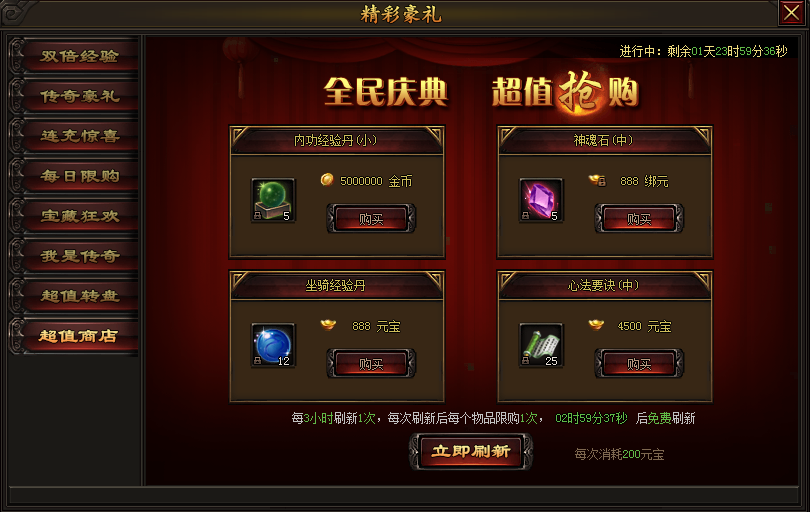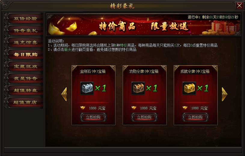 活动期间,每天可以购买部分限量折扣道具,超值优惠,机不可失!