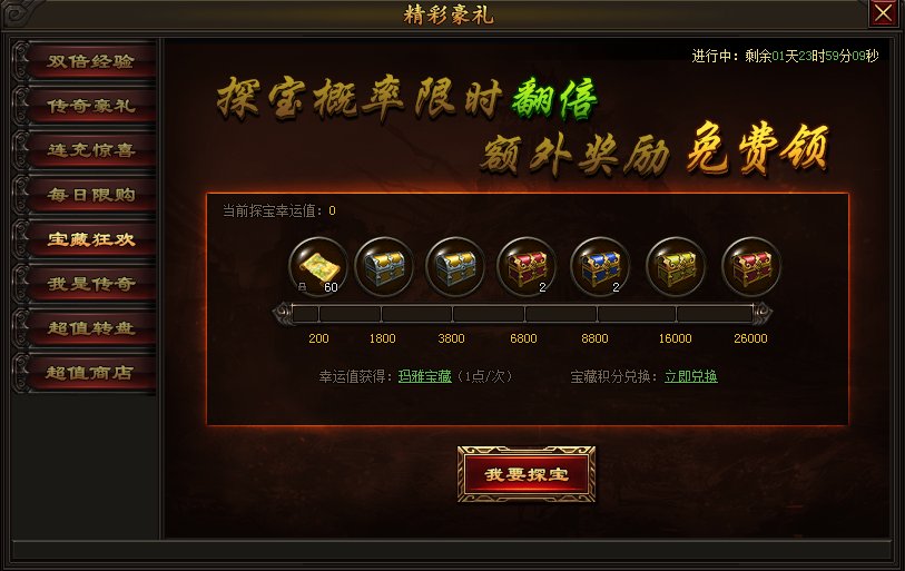 探宝概率限时翻倍,超稀有道具,供你选择;