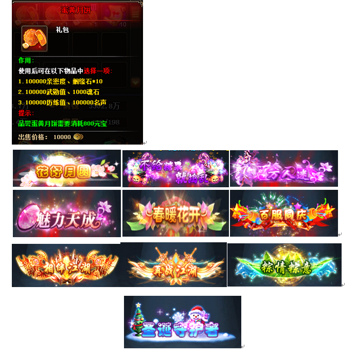 以下9种称号任选1个、任选-坐骑碎片*100、七阶暗器*1(每个账号仅限一次)