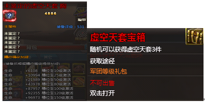 二、活动期间内(2月11日0:00-2月17日23:59)累计充值3000元以上即可获得:虚空天套宝箱*1(最顶级装备)